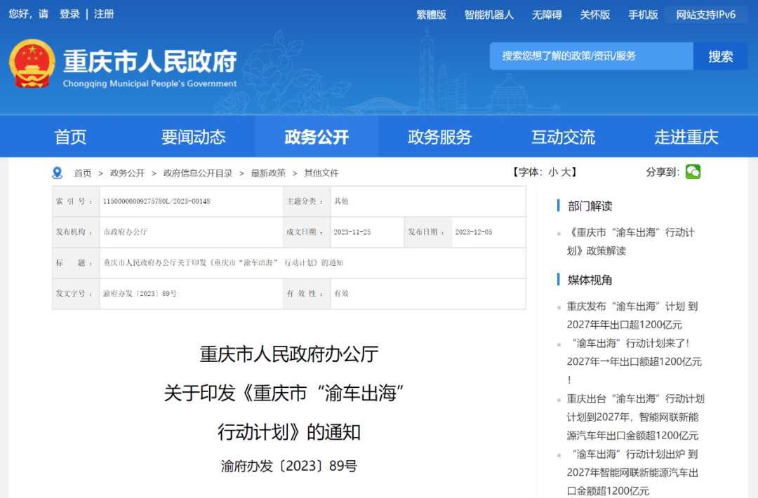 近日,重庆市人民政府办公厅印发《重庆市“渝车出海”行动计划》,加快建设全国领先的智能网联新能源汽车出口基地,实现由产品出口向品牌及技术输出等价值链高端环节跃升。《行动计划》提出持续提升企业出口能力、积极完善出口通道、不断强化金融支持等多项重点任务;要求充分发挥陆海新通道金融服务联合体作用,推动境内外金融机构合作破解跨境贸易本币结算、跨境供应链融资以及境外产业融资、汽车消费金融产品供给等金融服务中的痛点堵点问题。推动金融机构针对重庆汽车出口,提升跨境贸易结收汇便捷化水平,拓宽汽车出口跨境结收汇渠道,并开展汇率风险管理服务专项行动,降低汇率风险。推动跨境融资业务模式及路径创新,鼓励境内外金融机构合作为汽车企业积极开展“外保内贷”“多式联运”提单融资、离岸人民币国际信用证等国际贸易金融业务,以及推动融资租赁公司开展存货融资租赁服务。推动金融机构提升重庆汽车“走出去”跨境贸易投资对接服务水平,跨境精准寻求有效交易合作方。政策全文如下:重庆市“渝车出海”行动计划为推动重庆市汽车企业进一步抢抓汽车出口发展机遇,深度融入全球汽车产业链和价值链体系,助推国内国际“双循环”,加快建设世界级智能网联新能源汽车产业集群,特制定本行动计划。一、发展目标加快建设全国领先的智能网联新能源汽车出口基地,实现由产品出口向品牌及技术输出等价值链高端环节跃升。到2027年,全市整车年出口量占全国整车年出口量的比重达10%;打造1—2家国内领先的智能网联新能源汽车出口企业和品牌,企业海外工厂布局不断完善;智能网联新能源汽车产业形成较强的国际辐射能力,年出口金额超过1200亿元。二、重点任务(一)持续提升企业出口能力。1.支持整车企业全面深化海外战略,将拓展国际市场放到更加重要的位置,持续提升企业自主创新能力。支持整车企业加大各类适销产品的研发推广力度,进一步优化产品和品牌结构,面向亚洲、非洲、拉美等发展中地区,重点出口传统燃油乘用车、载货车及专用车产品;面向欧美和大洋洲等发达地区,重点出口高端智能网联新能源乘用车产品以及新能源商用车产品。支持整车企业持续巩固传统燃油车市场,根据海外市场需求不断提升传统燃油车的生产工艺、技术水平等,推动产品更新换代。同时,积极抢占智能网联新能源乘用车、新能源商用车等新兴市场,扩大智能网联新能源汽车整车出口规模。(责任单位:市经济信息委、市商务委)2.支持整车企业积极布局海外市场,通过设立分支机构、组建本地化运营团队等,完善海外销售渠道。鼓励整车企业加强与国外销售公司合作,通过海外并购、合资合作等方式,共建海外市场营销渠道。鼓励整车企业在出口目的地建立完善的汽车维护保养服务体系,为用户提供全方位、全链条的售后服务,持续提升消费者用车体验。鼓励整车企业加强协同合作,共享海外营销、服务渠道,实现“单渠道、多功能”联动发展,拓展市场覆盖面,提升重庆生产的汽车在国际市场的抗风险能力。支持整车企业在海外建立数据储存服务平台,支撑智能网联整车产品出口。(责任单位:市商务委)3.推动汽车出口从单一的整车出口贸易模式向“整车+散件组装+本地化运营”等多种模式转变,推动产业链上下游实现全面出口。鼓励整车企业在海外有步骤地建立整车生产基地和散件组装工厂,减少物流运输成本,提升产品在目标市场的竞争力。(责任单位:市经济信息委、市商务委)4.建立重庆智能网联新能源汽车出口联盟,整合现有资源,引导整车企业提高与核心供应商在产品、技术、资金、物流等多领域的要素协同能力,建立优势互补、风险共担、收益共享的利益共同体。支持零部件企业跟随整车企业抱团“出海”,积极争取进入国际整车企业配套采购体系,全面拓展整车配套、售后服务、特色改装等国际市场。(责任单位:市商务委、市经济信息委)(二)积极完善出口通道。5.积极协调央企、沿海港口企业,帮助我市整车企业争取海运滚装船舱位,引导整车企业结合产品运输需求,与海运滚装船运营企业签订“量价运力捆绑协议”,支持我市物流平台企业与海运企业合作打造海运滚装船。协调国铁集团增加重庆至俄罗斯、中亚地区的中欧班列计划,保障我市整车出口需求。(责任单位:市政府口岸物流办)6.完善果园港出口汽车物流通关服务体系,支持企业自主选择通关模式,提升我市汽车出口通关效率,依托长江黄金水道、中欧班列、西部陆海新通道等通道出口汽车。针对整车龙头企业,不断优化汽车出口综合物流解决方案,降低物流成本。(责任单位:市政府口岸物流办、重庆海关)7.持续培育汽车物流龙头企业,加快引导汽车运输采取公转铁、公转水等多式联运模式,大力引导汽车物流企业智能化转型,持续降低物流成本。推动提升海外物流“最后一公里”服务能力,鼓励汽车物流龙头企业沿出境出海大通道“走出去”,在沿线布局海外仓,不断提升海外物流运输能力。(责任单位:市政府口岸物流办)(三)提升海外市场政策法规应对能力。8.积极研究海外市场政策法规。组建法规专家团,搭建共享服务平台,深入研究欧标、美标等全球主流汽车法规的共性及差异化要求,以及碳足迹、关税、投资、本地化等政策。引导企业认真