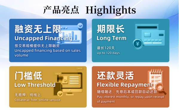 作为国际贸易融资服务及跨境电商融资的头部企业,天逸集团聚焦全球跨境电商平台卖家的融资需求,推出电商融资专属服务平台——天逸电商宝。依托全球跨境电商平台背书,天逸电商宝为优质电商卖家提供上不封顶、无抵押、最长120天的电商融资服务,满足卖家销售旺季扩大生产的资金需求,同时灵活的还款方式,进一步优化卖家的资金使用效率,保障业务稳健增长。